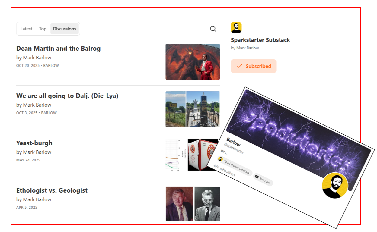 Barlow - Creator of sparkstarter youtube channel and author of sparkstarter substack.